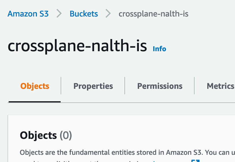 So you can see in this part we are creating a Kubernetes Object with a kind of Bucket off the s3.aws.crossplane.io/v1beta1extension we've installed. In it, we give the bucket an internal facting name in metadata and an external name in the crossplane.io/external-name part of the annotations. This is the core of what the object will be.